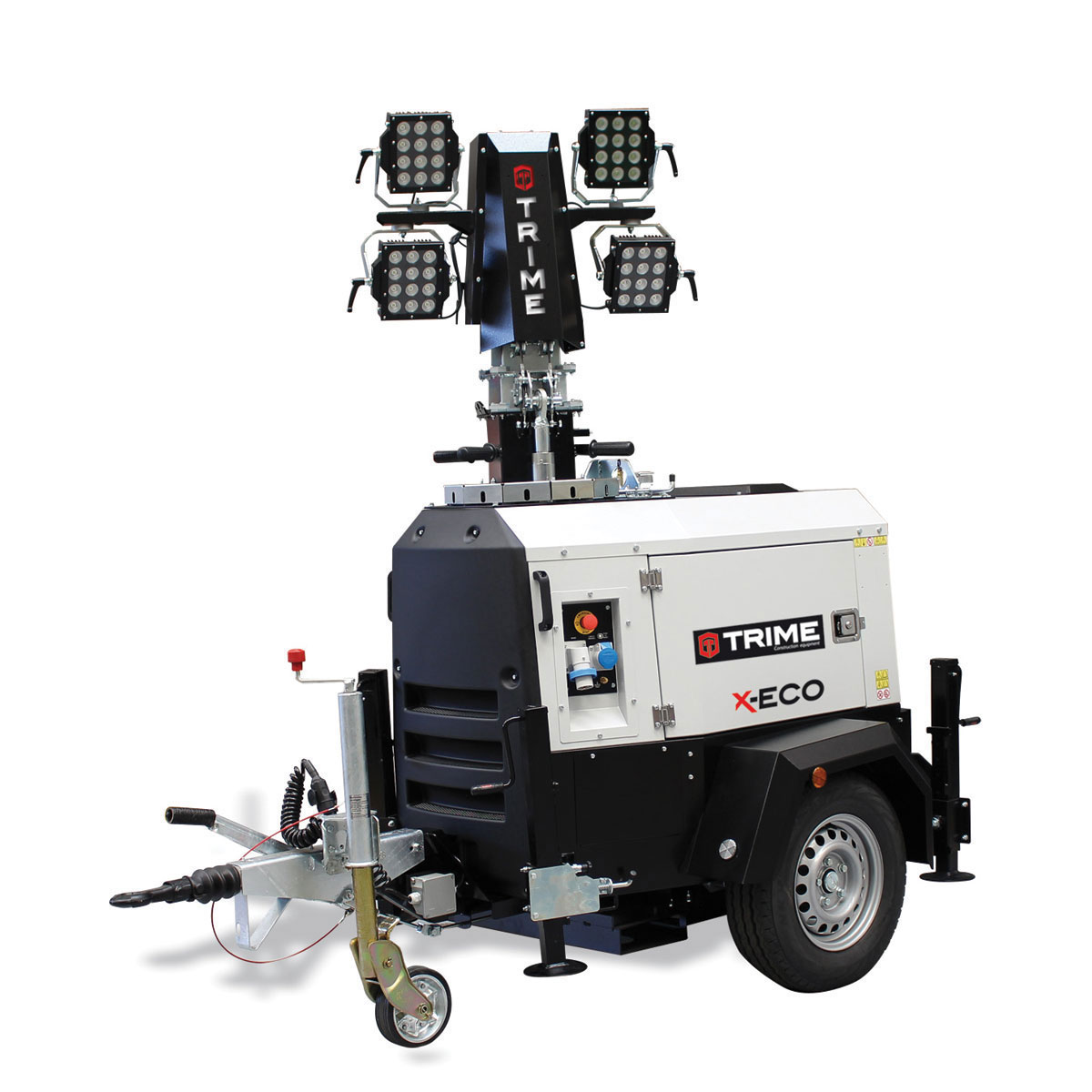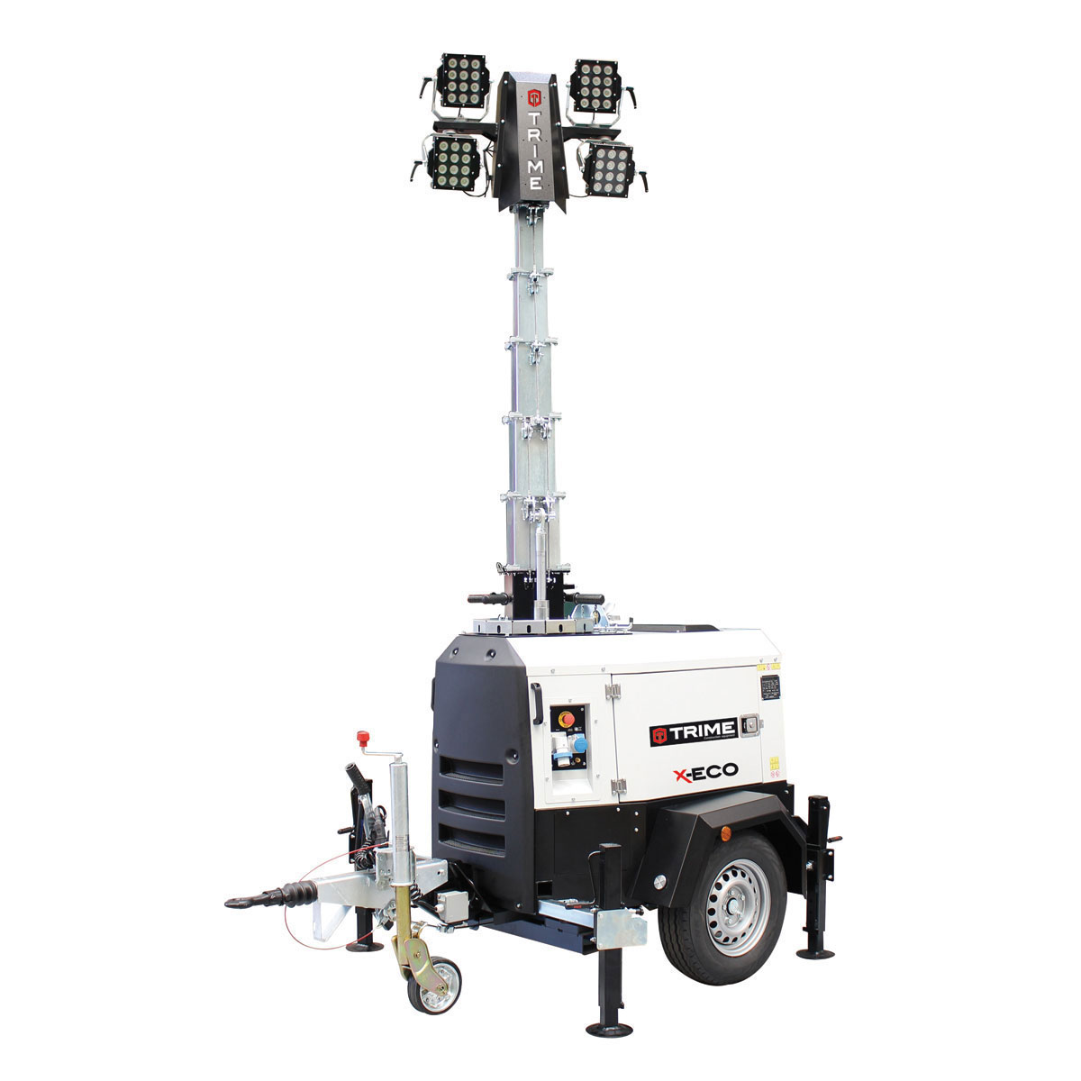 X-Eco 4x150W 48V LED ir 8.5-metrus augsts gaismas tornis ar 48V LED, darbības laiks līdz 50,000 stundām. izgaismotais laukums 3000 m². Vertikālais masts ar mūža garantiju. Kubota 1500 apgr/min, 2 cilindru dīzeļdzinējs ar ūdens dzesēšanu, 2 gadu garantija. Pielietojums: Celtniecības objektos, pasākumos, ceļubūvē, rūpnieciskās ēkās utt.